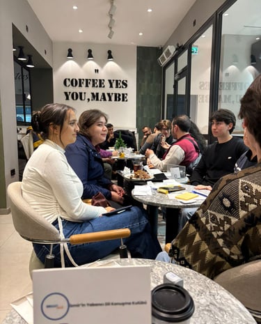 BrightTalk İzmir, İngilizce konuşma pratiğini sosyal ve keyifli bir deneyime dönüştürmeyi amaçlayan bir konuşma kulübüdür. Amacımız; İngilizce’yi ders havasından çıkarıp gerçek hayatta, doğal ve özgüvenli bir şekilde kullanabileceğin bir ortam sunmaktır.